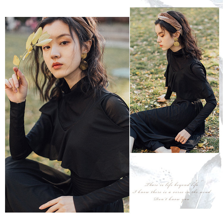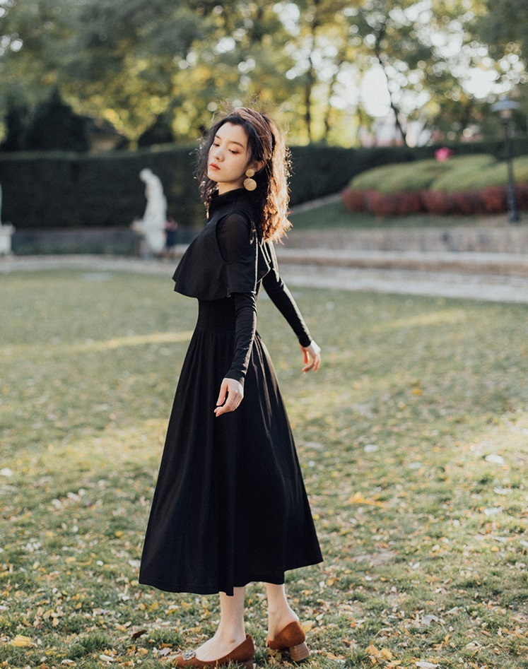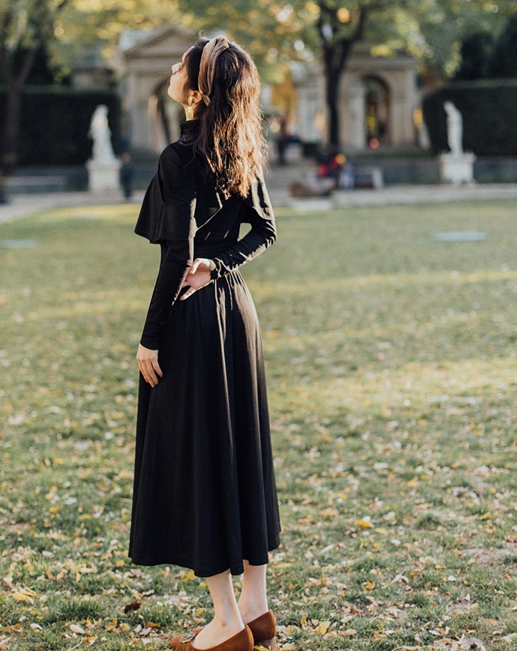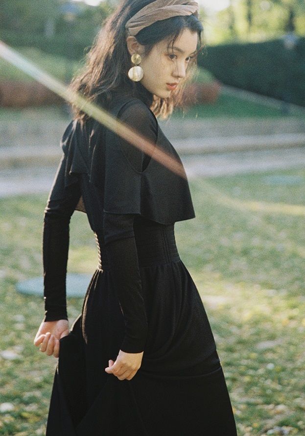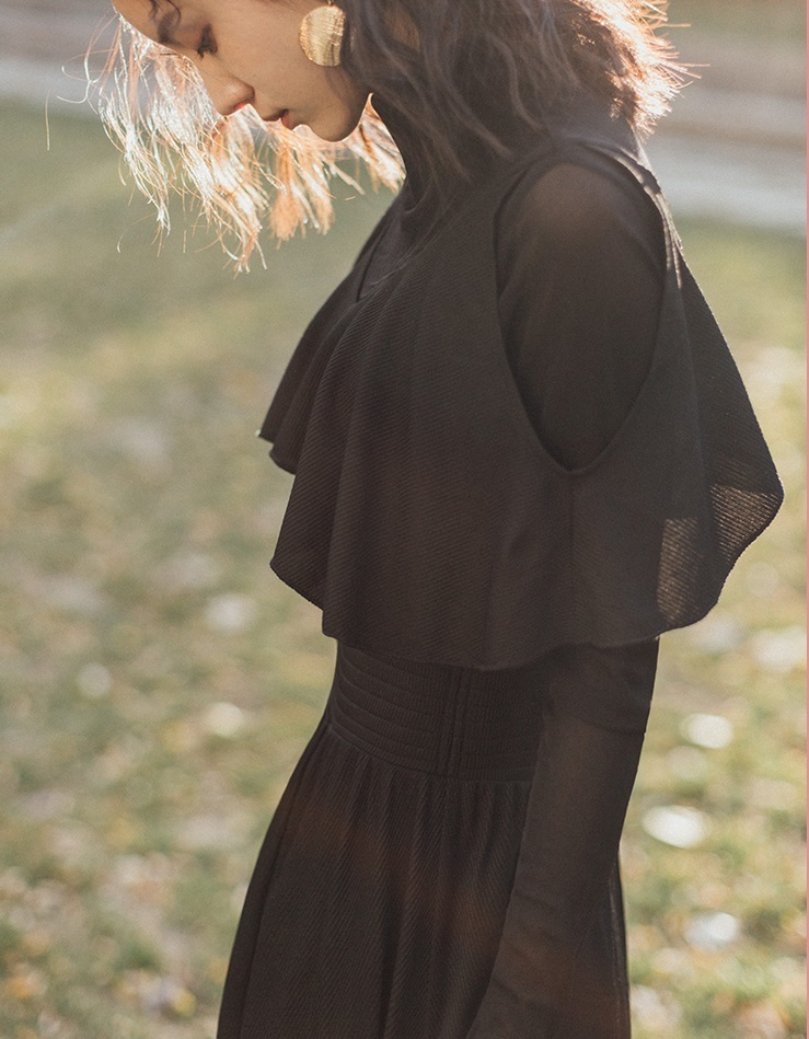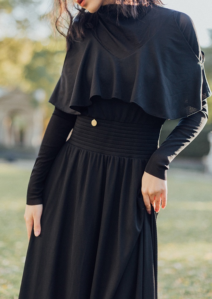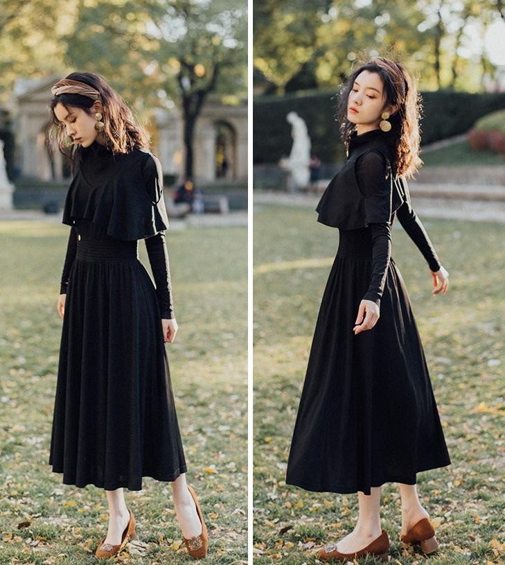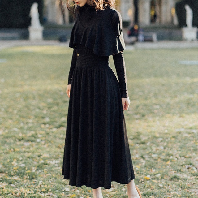ケープを纏ったような重ね着風デザインがこなれ感たっぷりなワンピースです♪
