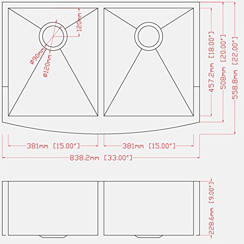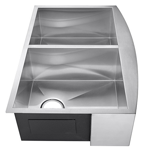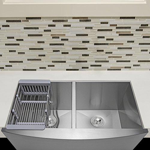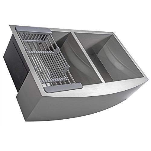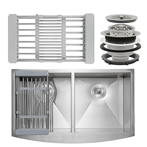 Firebird 33" x 22" x 9" Apron Farmhouse Handmade Stainless Steel Double Bowl 50/50 Kitchen Sink w/ Drain Strainer Kit Adjustable Tray