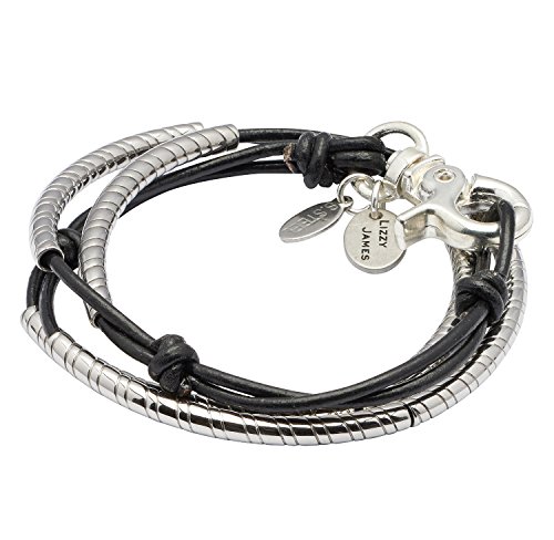 -. Title : Mini Lasso 2 Strand Stainless Steel Bracelet With Natural Black Leather by Lizzy James