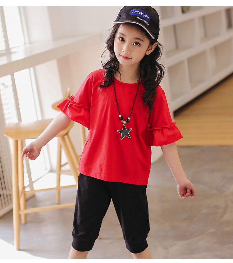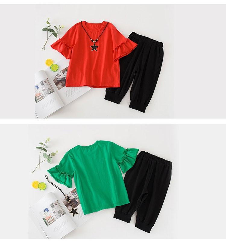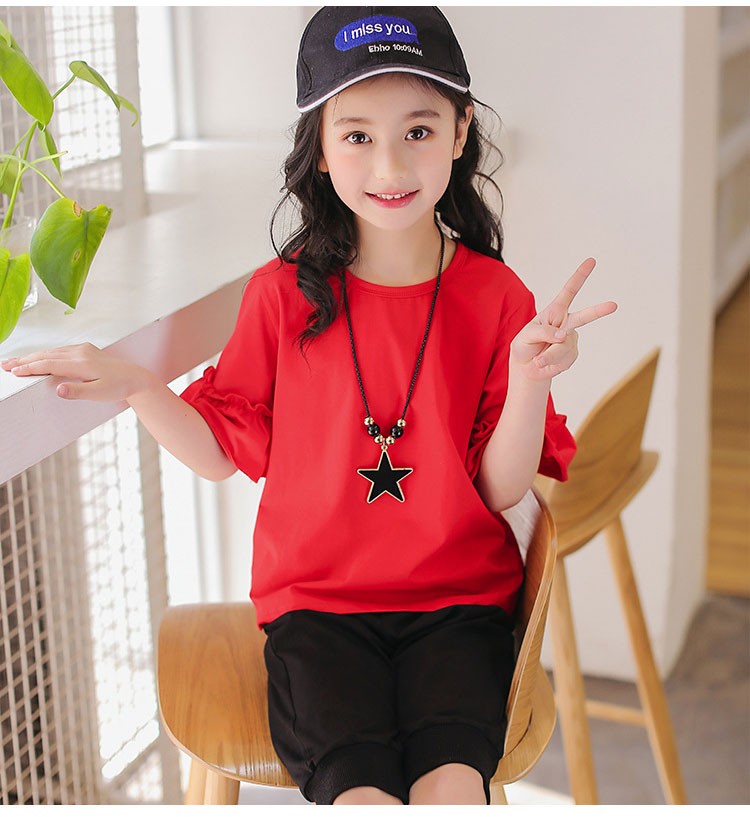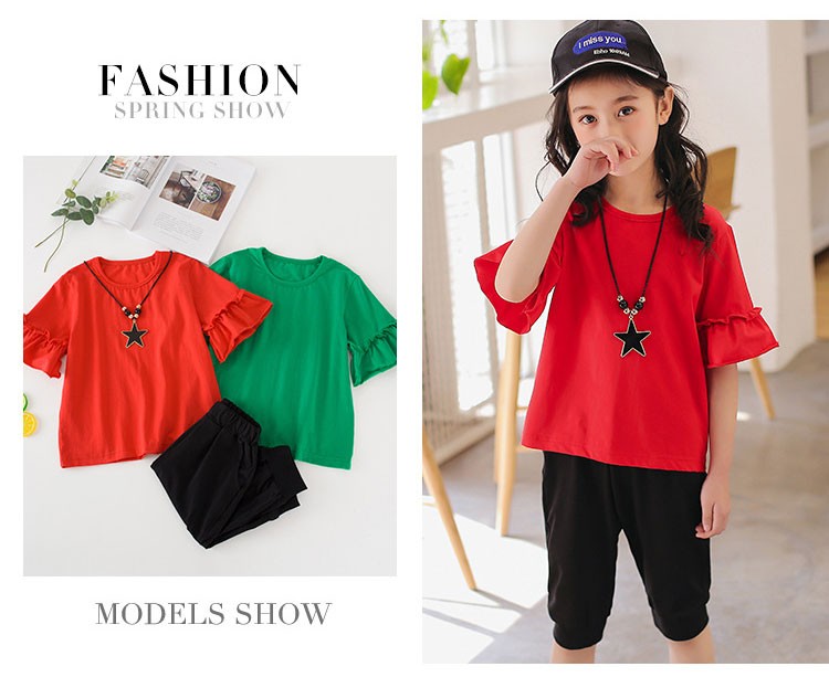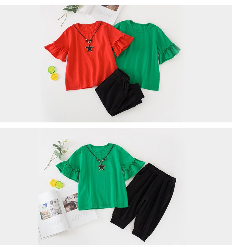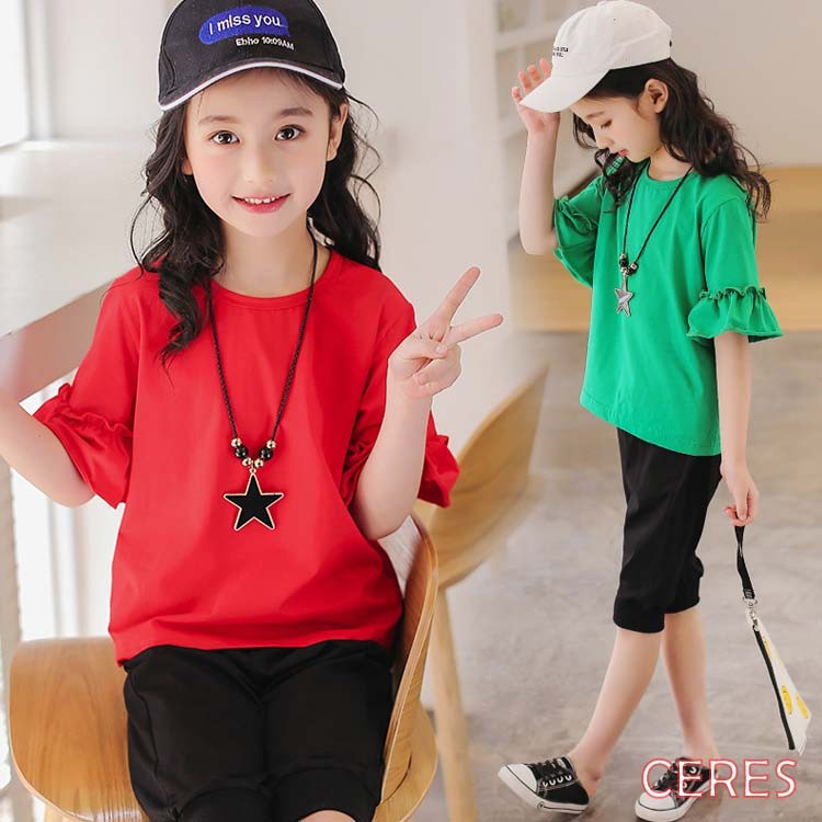 【製品仕様】■商品名セットアップ キッズ 女の子 子供服 韓国子供服 夏 半袖 ボトムス 無地 ■商品説明フレア袖の可愛いTシャツと、ジョガーパンツ、アクセサリーのお得な3点セット。着やすく動きやすいから、デイリーウェアとしてはもちろん、ダンスやスポーツにも。サイズ豊富だから、ママや姉妹でお揃いも楽しんで。■サイズ/寸法120cm,130cm,140cm,150cm,160cm■素材/材質コットン95%、ポリウレタン5%■色/カラーレッド グリーン【検索キーワード】セットアップ キッズ 女の子 子供服 韓国子供服 可愛い 夏 半袖 無地 フレア 半袖Tシャツ トップス カットソー 五分パンツ ハーフパンツ ボトムス ズボン オシャレ おしゃれ ダンス ヒップホップ トレーニングウェア 親子ペアルック お揃い