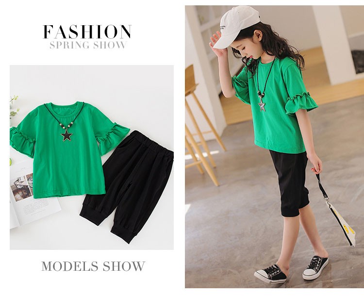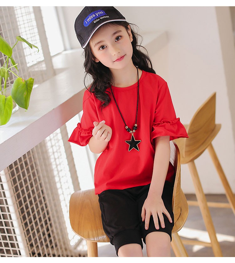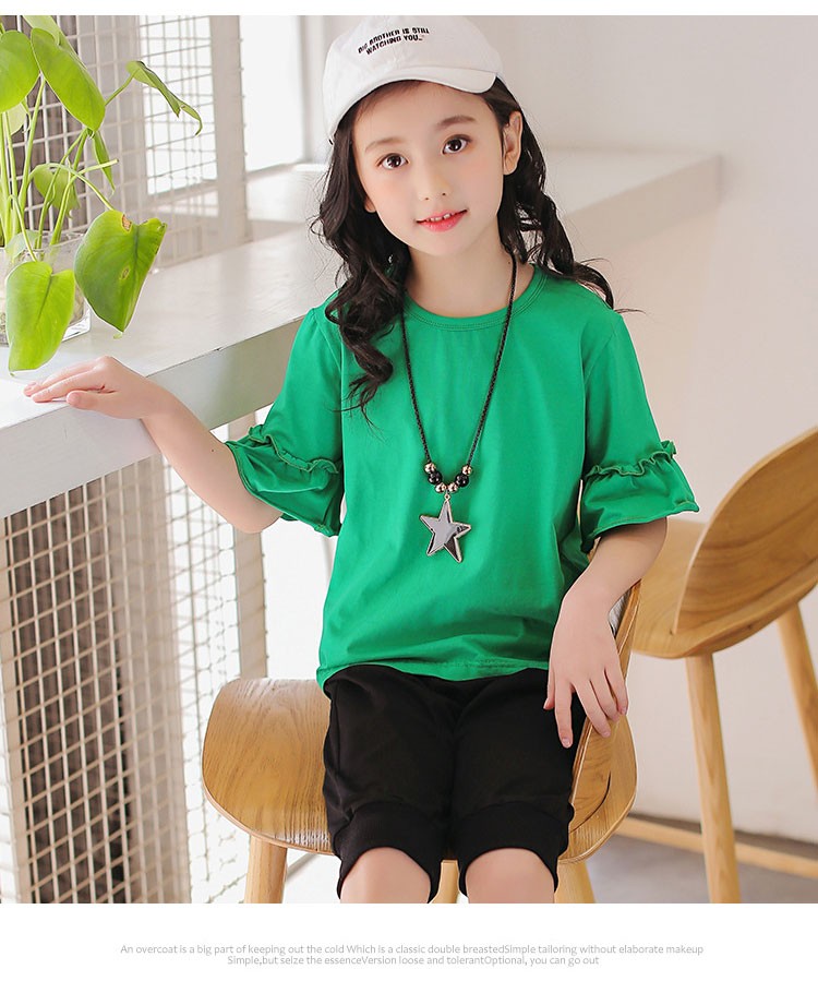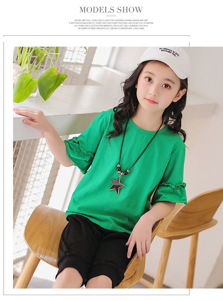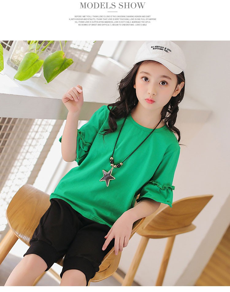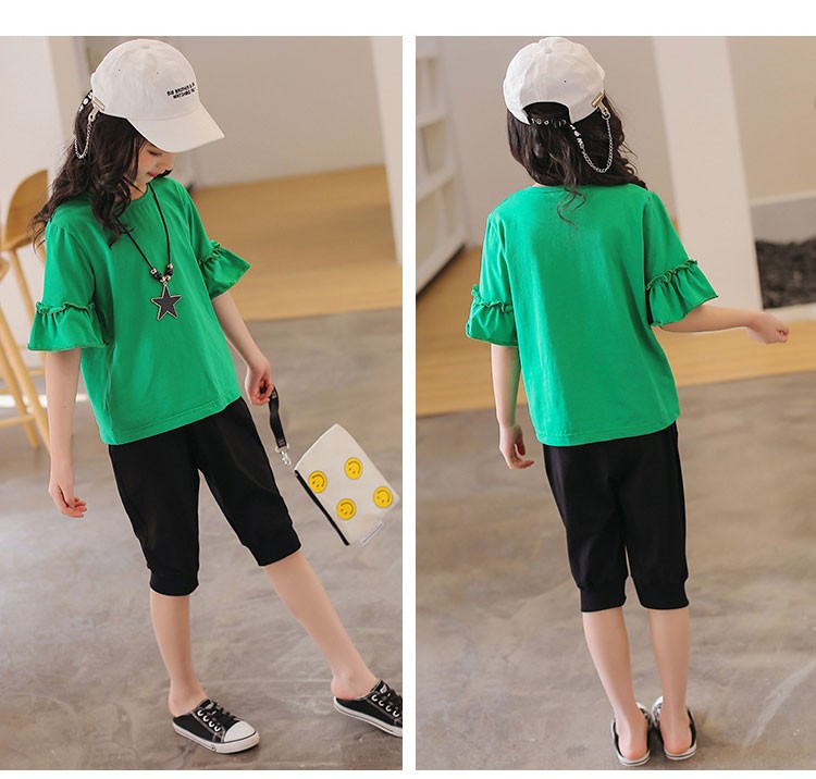 【製品仕様】■商品名セットアップ キッズ 女の子 子供服 韓国子供服 夏 半袖 ボトムス 無地 ■商品説明フレア袖の可愛いTシャツと、ジョガーパンツ、アクセサリーのお得な3点セット。着やすく動きやすいから、デイリーウェアとしてはもちろん、ダンスやスポーツにも。サイズ豊富だから、ママや姉妹でお揃いも楽しんで。■サイズ/寸法120cm,130cm,140cm,150cm,160cm■素材/材質コットン95%、ポリウレタン5%■色/カラーレッド グリーン【検索キーワード】セットアップ キッズ 女の子 子供服 韓国子供服 可愛い 夏 半袖 無地 フレア 半袖Tシャツ トップス カットソー 五分パンツ ハーフパンツ ボトムス ズボン オシャレ おしゃれ ダンス ヒップホップ トレーニングウェア 親子ペアルック お揃い