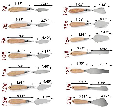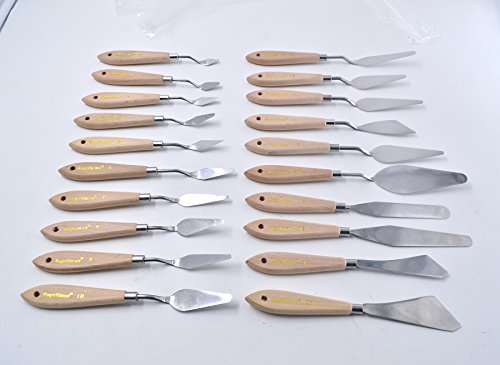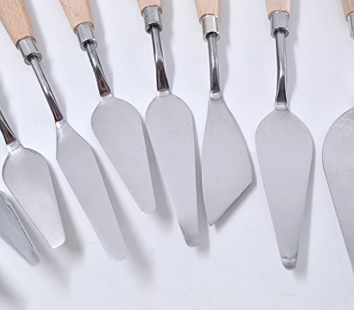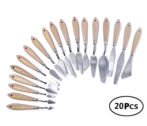 Betwoo Wood Handle Stainless Steel Knife Palette Oil Painting Spatula Scraper, Set of 20
