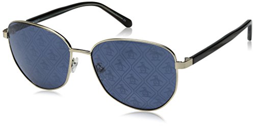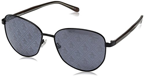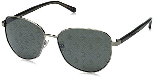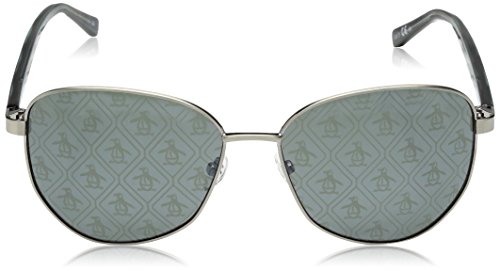 Original Penguin men's geometric aviator style sunglasses, the robert Gunmetal grey metal frame with penguin patterned mirrored green lenses