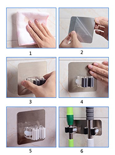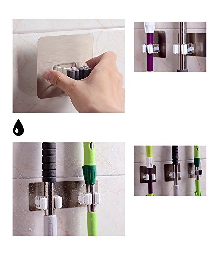 ❤ Easy to install - NO nails, no drilling, no screws, 3M Self Adhesive Brushed Mop and Broom Holder with high viscosity properties and durability to ensure that mop and Broom do not fall off.