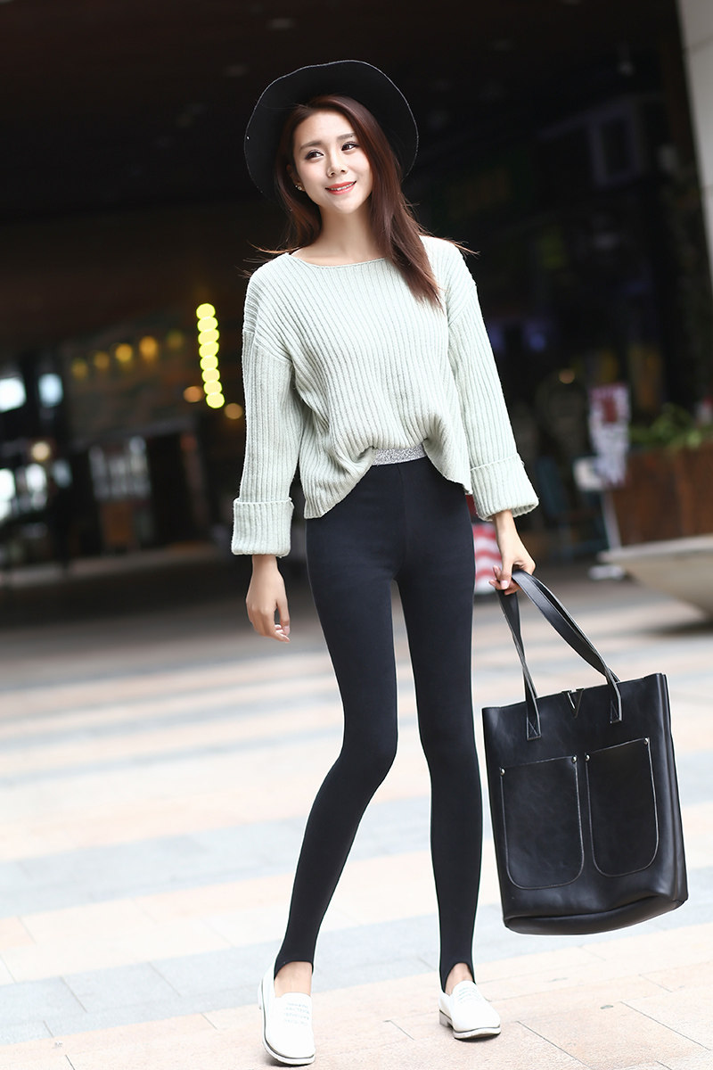 秋冬新款韩版纯棉打底裤彩腰外穿显瘦弹力高腰大码九分小脚裤女潮