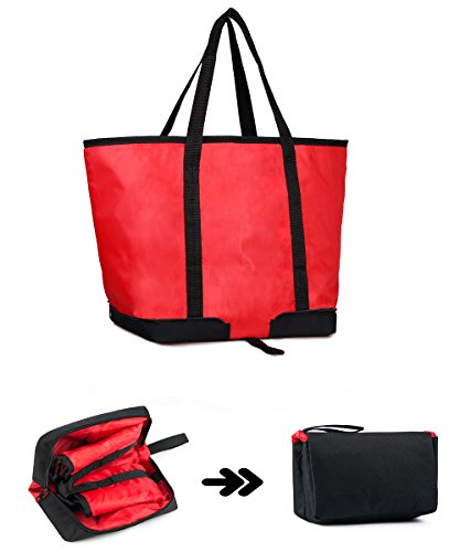 XMBEDERT Reusable Grocery Bag Insulated Cooler Bag Tote Large Shopping Bag for Picnic, Outdoor, BBQ, Sports Event, Red