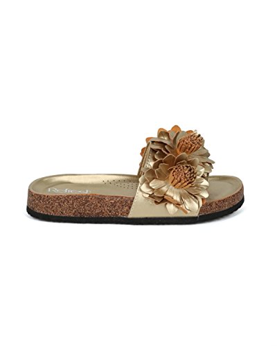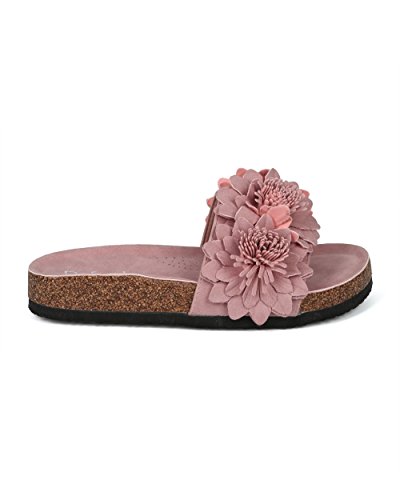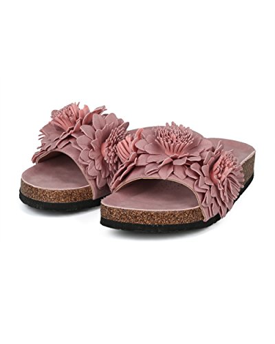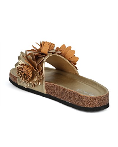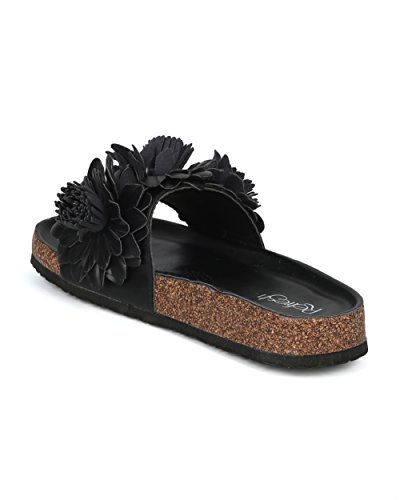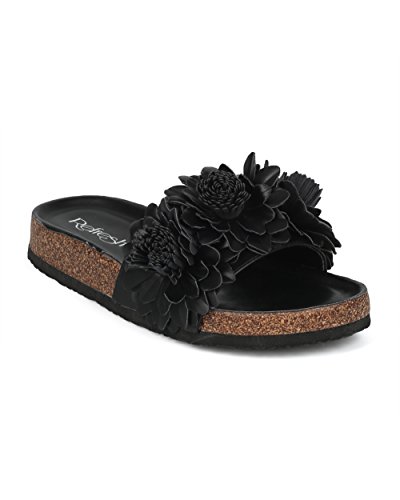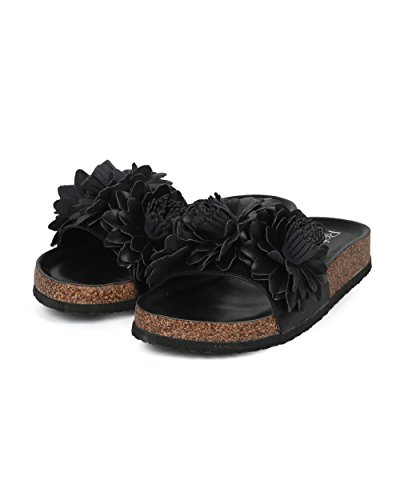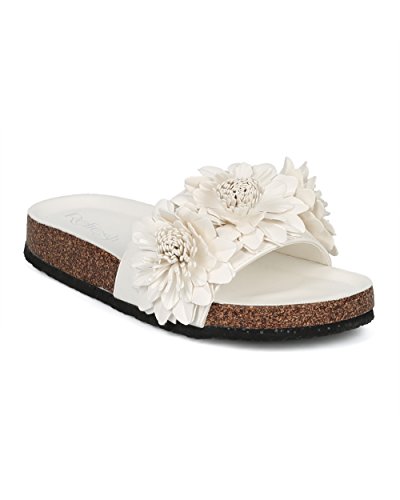 (Alrisco)/Women's/Sandals/DIRECT FROM USA/Alrisco Women Leatherette 3D Flowers Open Toe Footbed Slide - HG30 by Refresh Collection