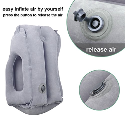 Studio : iHG Publisher : iHG Product Description ERGONOMIC This travel pillows make you relax naturally. Inflatable pillow for travel support your head, neck for napping. You can put your phone through the hole of nap pillows to watch movies. LIGHTWEIGHT PORTABLE Package Size: 6.5*4.5*3.5 inches, Weight: 12 ounce. There is a small bag to store the air pillows. Save your space. Just the children can take inflating pillows. You can carry this small travel pillows in your luggage for small space. QUICKLY TO INFLATE AND DEFLATE Just open the second valve of inflatable travel pillows to blow air, the inflatable traveling pillows can be easily inflated by a few breaths of air. This self inflating sleeping pillow guarantees 100% air tight. Just press one button to release the air of sleep apnea pillows. USE IN MANY WAYS You can use these best travel pillow in different ways. Pillows for sleeping are suitable for airplanes, buses, office rest or napping, camping and all kinds of travels. Just one napping pillow can be used in all ways to make it easier relax. Certainly this travel pillow for women is also travel pillow for men. 18-MONTH WARRANTY You can take this grey or black travel pillow insert with 18-month warranty. Best pillows for sleeping to your journey. This airplane pillow is the best travel accessories. You can call "Go travel pillow". 0