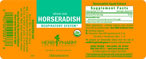 Herb Pharm Certified Organic Horseradish Extract for Respiratory System Support - 1 Ounce