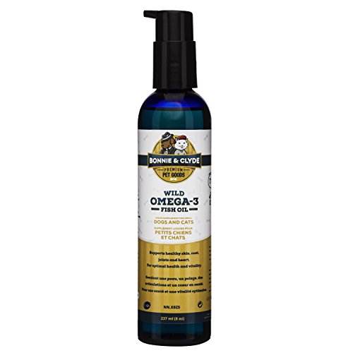 -. Binding : Misc. -. Brand : Bonnie and Clyde Pet Goods -. Label : Bonnie and Clyde Pet Goods -. Manufacturer : Bonnie and Clyde Pet Goods -. PackageQuantity : 1 -. ProductGroup : Pet Products -. ProductTypeName : PET_SUPPLIES -. Publisher : Bonnie and Clyde Pet Goods -. Studio : Bonnie and Clyde Pet Goods -. Title : Wild Omega 3 Fish Oil for Dogs and Cats Supplement - Your Pets Will Love the Flavor - Natural Non-Soy, Non-GMO Vitamin E, for Skin, Coat and Joint Support - More EPA and DHA than Salmon and Krill Oil for Dogs and Cats - IFOS Certified Product