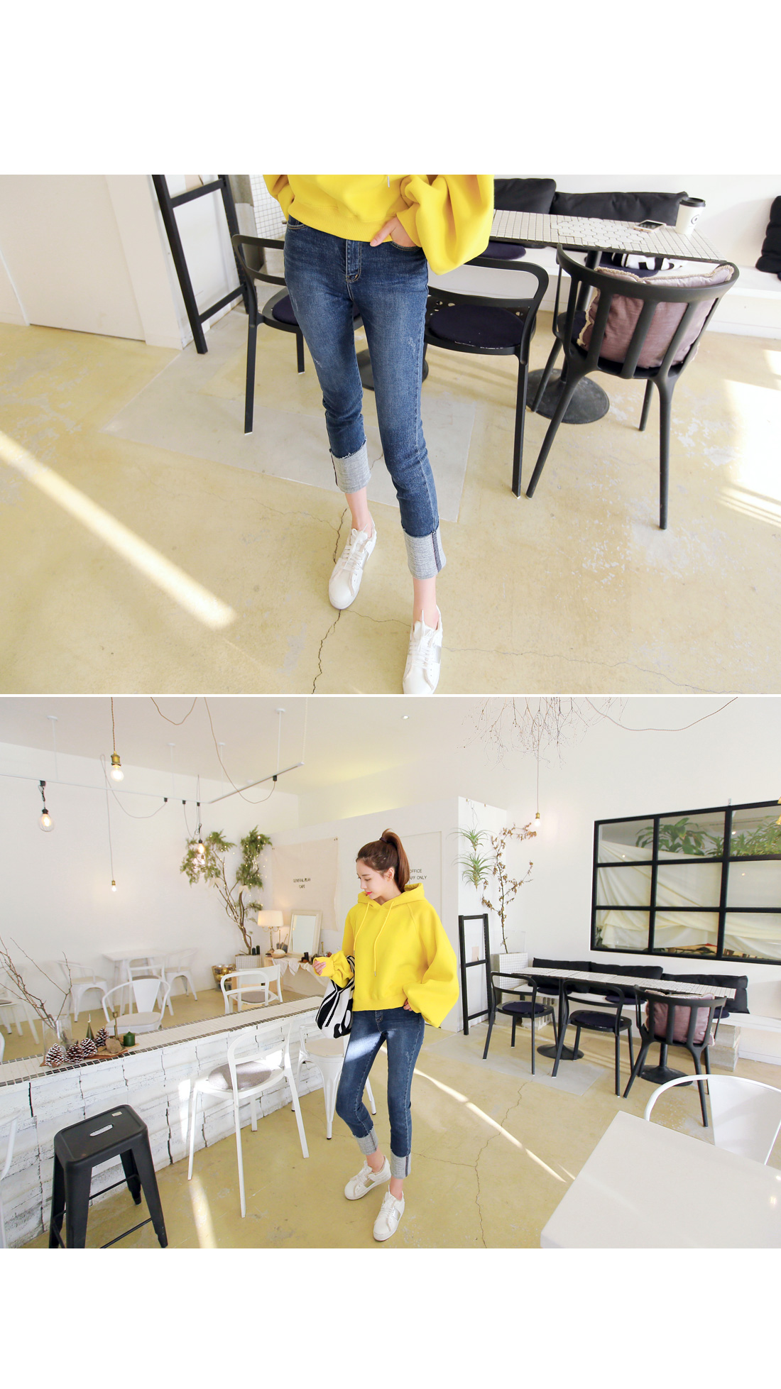 밑단에 롤업 디테일이 포인트로 들어가