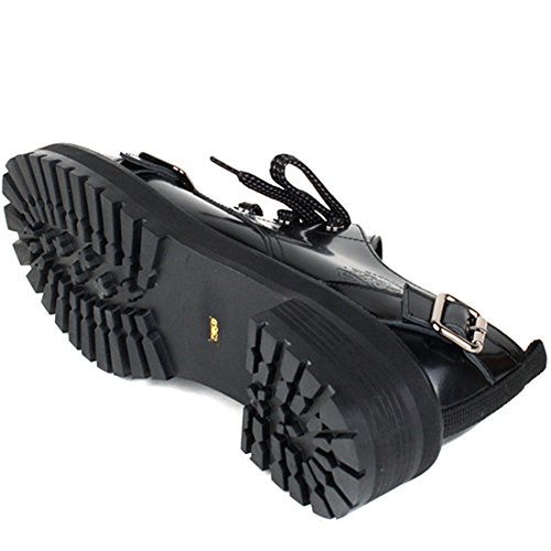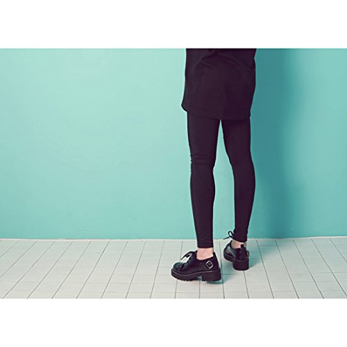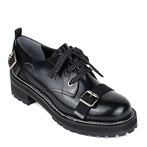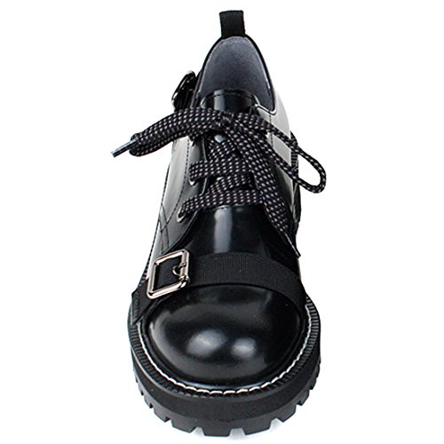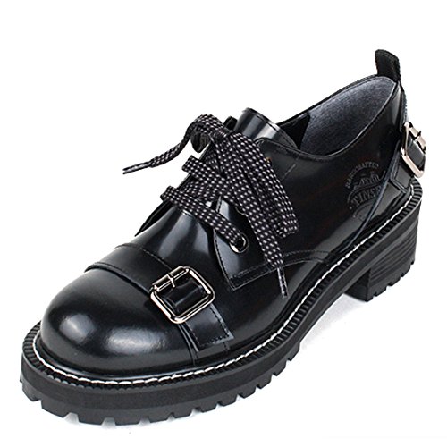 TINSEL LIKE CIRCUS Women’s Genuine Cow Leather Black Round Toe Lace-Up Oxford Shoes