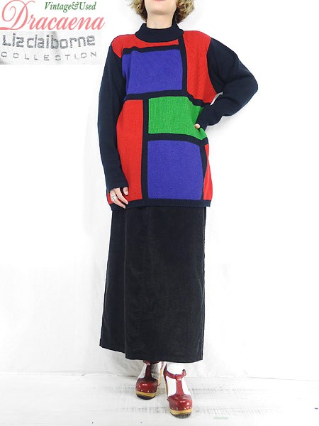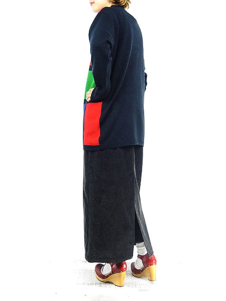 Ladies ブランド- カラー黒ベース・カラフル メール便不可 コンディション★★★ モデル身長158cm 素材ウール70%・アンゴラ20%・ナイロン10% 表記サイズL 実寸サイズ 着丈 73 cm 身幅 56 cm 肩幅 59 cm 袖丈 51 cm ※ウエスト・ヒップ以外は平置き採寸
