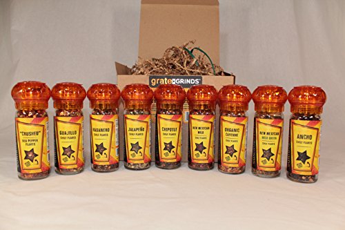 -. Feature : Collection of 9 different chile flakes in a gift box