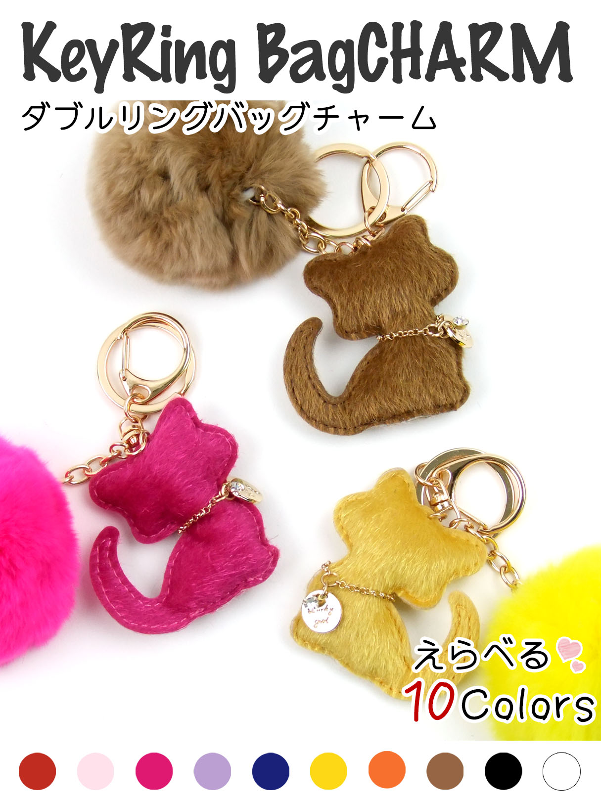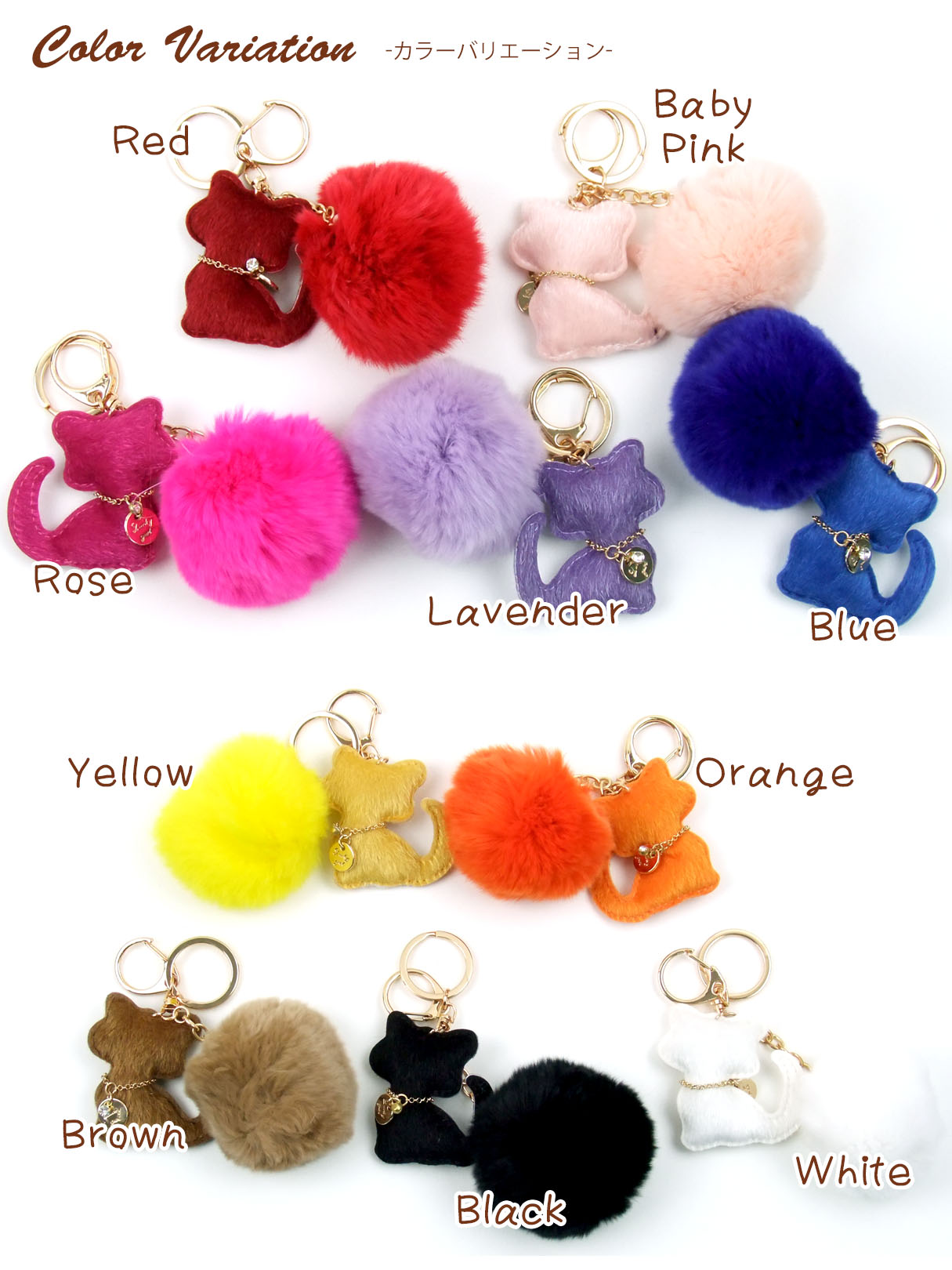 【かわいいバッグチャームが入荷!】ポンポンファーとハラコ風PUレザーが可愛いネコのバッグチャームで選べる全10カラー!ぷっくりしたフサフサの猫とふわふわポンポンファーがとてもキュート。さりげないボリューム感で、どんなバッグにも合いやすいスマートなデザイン!ぷっくりしたフサフサの猫とふわふわポンポンファーがゆらゆら揺れるかわいいチャームキーホルダー。バッグだけでなくスマホケースや鍵にもつけられるのでとても便利です!豊富なカラーバリエーションで簡単なお土産などにもピッタリですね。