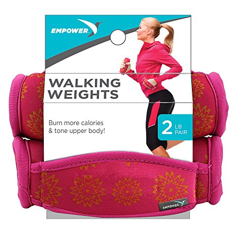 " Empower Soft Walking Weights for Women Walking is the #1 fitness activity for women in the U.S. Walk your way to fitness with our Empower Fitness Walking Weights. Walking has numerous health benefits, is low impact and gentle on your body. Imagine the added results you will see when you?incorporate a set of hand weights to your walking routine. Walking with hand weights will improve the effectiveness of your workout by increasing calorie burn and toning your upper body. Use a set of hand weights while jogging, kickboxing, running on treadmills?or using eliptical machines. Designed specifically for women, these soft walking hand weights by Empower Fitness feature a comfort-fit strap that holds the weight in place while you walk without needing a tight grip. The durable neoprene fabric is soft and comfortable on the skin, providing you with a comfortable hold for as long as you can walk!?? - Burn more calories while toning and tightening your upper body