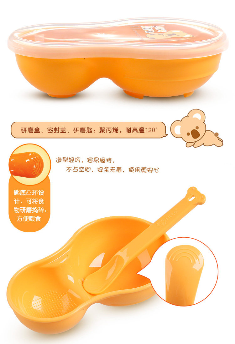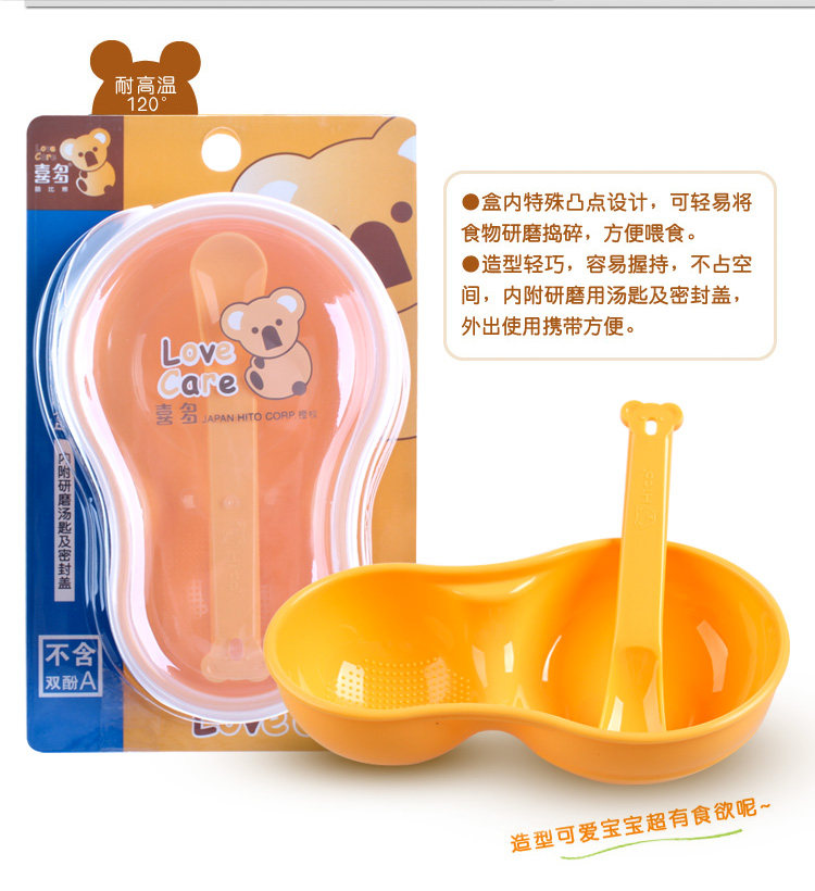 盒内特殊凸点设计,可轻易将食物研磨捣碎,方便喂食。造型轻巧,容易握持,不占空间,内附研磨用汤匙及密封盖,外出使用携带方便。 |