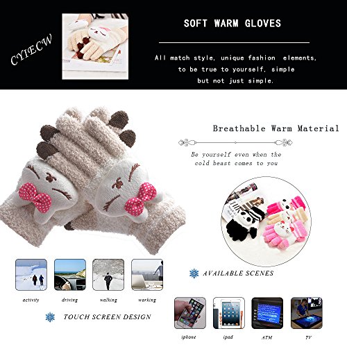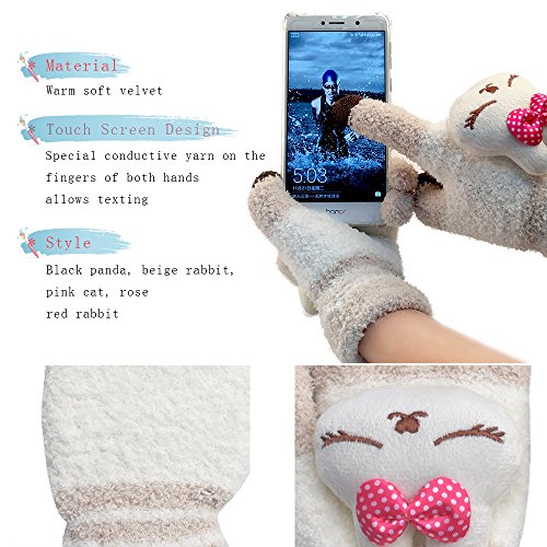 Really so cold? Worrying about not being stylish or cute in winter? Hoping to keep your arms still beautiful in chill winter? Now, CYIECW gives you a solution. CYIECW WARM SOFT GLOVES: -Condition: 100% Brand New -Choice: Black panda, beige rabbit, pink cat, rose red rabbit, animal gloves keep you still stylish and cute in winter - Special design: index/middle finger and thumb have the touch screen function on both hand, make you enjoy your phones even in winter -Material: Soft velvet -Easy to care: Hand washable -Applied Season: Winter A great Christmas present/New Year gift for female friends, girl friend, etc. 0 |