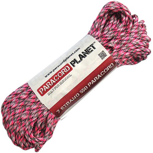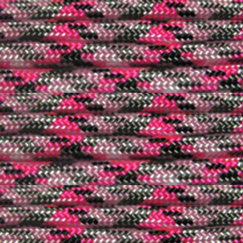 Paracord Planet 550 lb, 100' Foot Hank, Neon Pink Camo Parachute Cord. Also known as paracord rope, parachute rope, utility cord, tactical cord, and military cord. USA made to provide durability and strength.