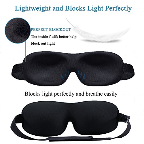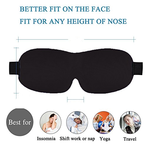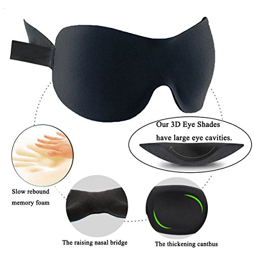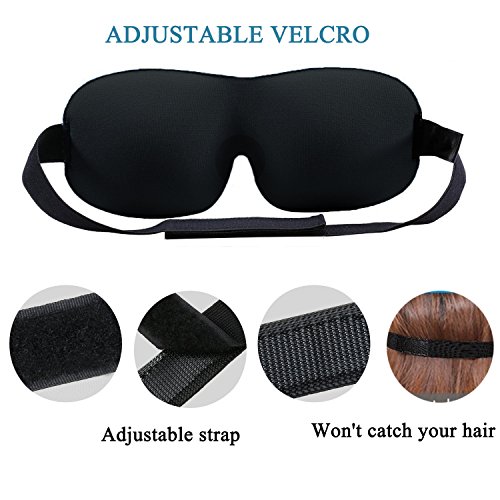 BREATHABLE SKIN FRIENDLY MATERIAL Comply to International High Standards: anti-bacterial, anti-mite,anti-fade, durability, and pilling resistance. Breathable material and smooth fabric let you release your facial stress and help you better enjoy a comfortable undisturbed sleep. ADJUSTABLE VELCRO DESIGN The sleeping mask fits with adjustable velcro for adults kids. It won't tangle hair. You also do not worry about it will fall off when you move while sleeping. And you won't feel bulky or muggy while wearing. WASHABLE ANTI-WINKLE Natural silk and slow rebound memory foam design, it won't in wrinkled after washed. What good for? 1. Yoga 2. Travelling and jet-lag 3. Blocking all light which harms your sleep 4. Shift work or naps. Package including: 1* Sleep Eye Mask 1* Ear Plus Set 1*Travel Bag Outer Composition: 100% Polyster Lining Material: Natural Silk High Density Slow Rebound Memory Foam ★Note:★ · If you suffer from eye disease, please consult your doctor before use. · Avoid dry cleaning, please gently wash your hands with lukewarm water. · Please do not use chlorine bleach absolutely. · Don't use Dryer, Iron,Dehydrator, Hand squeeze etc. will collapse and damage the sleep mask. 0