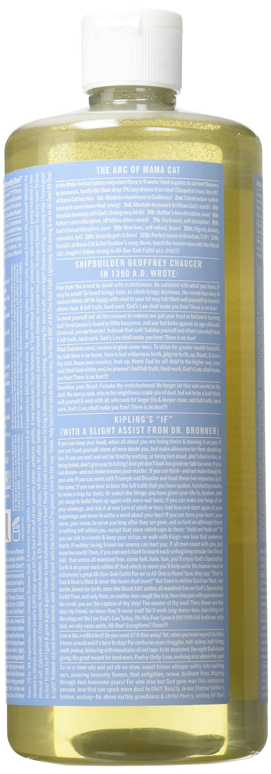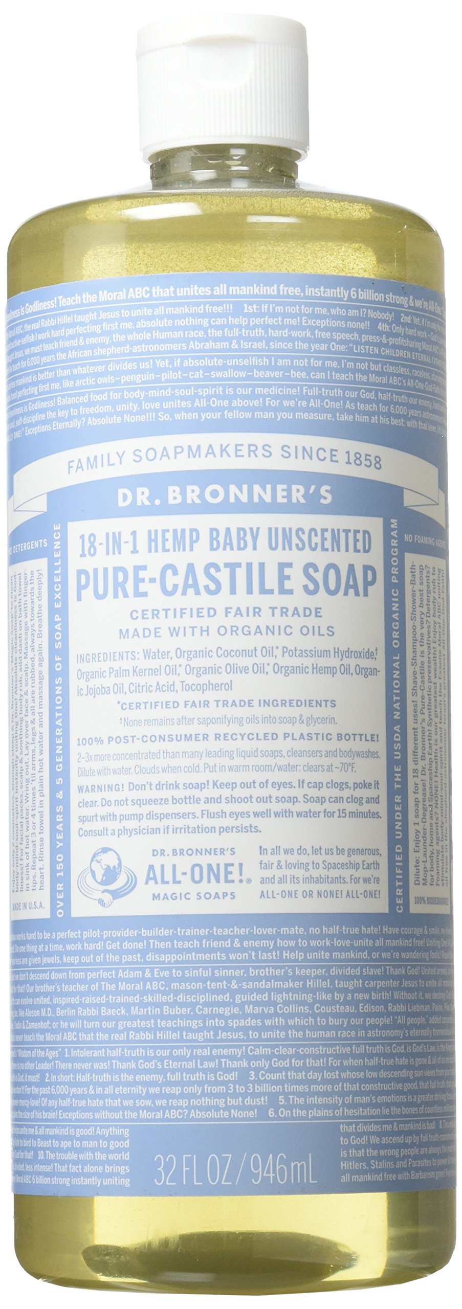 On the label of Magic Soap, Emmanuel Bronner's world peace and a thought for environmental protection are densely written.