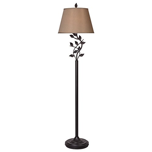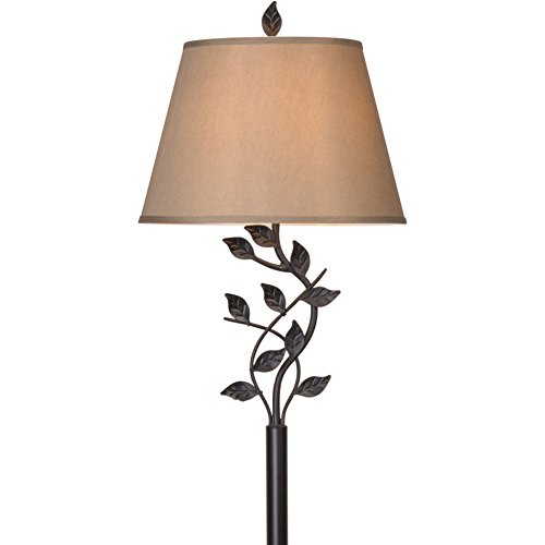 Revel Ambrose 57" Matte Black Floor Lamp, Intricate Leafs Design, Gold Bronze Iridescent Shade