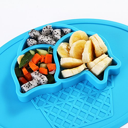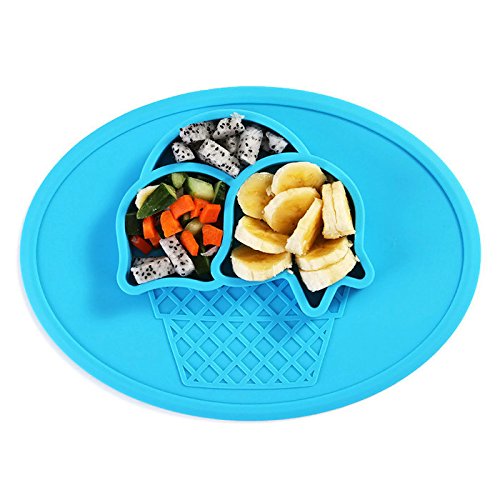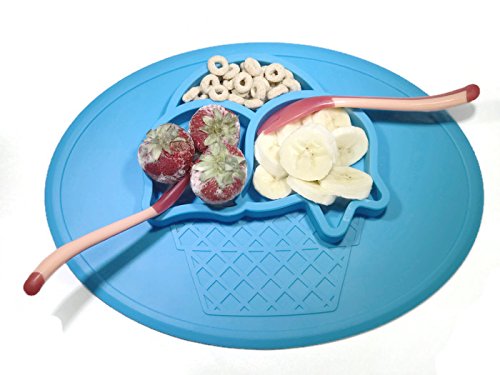 -. Title : Silicone Baby Placemat + Plate with FREE Spoon and Fork , 2017 Non-slip Safe Dining Mat Ice Cream Shape, Reusable Lightweight Portable Travel, FDA Approved Microwave and Dishwasher Safe by Holac co.