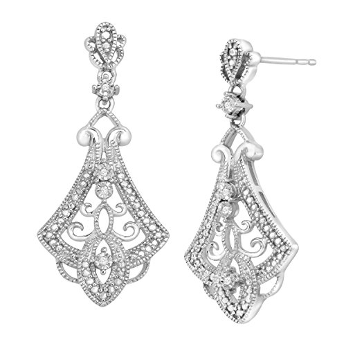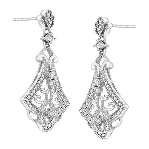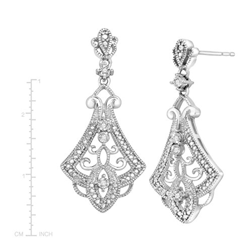 These glamorous drop earrings will have you glowing from ear to ear! Round-cut diamond accents decorate the face of these vintage-inspired earrings, crafted in sterling silver. Pieces measure 1 3/16 by 9/16 inches.Feature