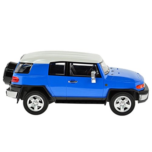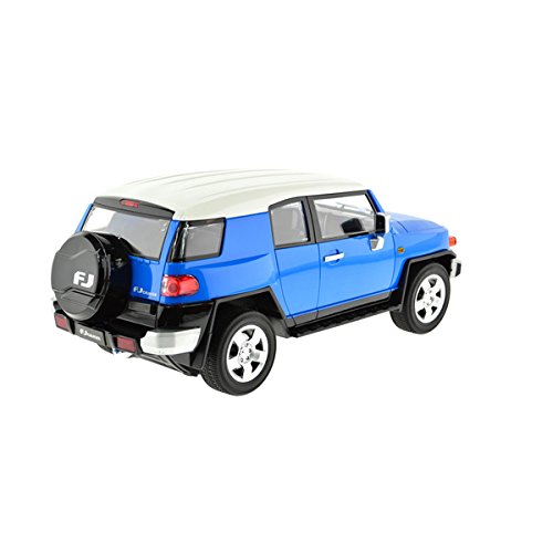 Product Description 1:12 scale Toyota FJ Cruiser Licensed car with working head and tail lights, extreme detail 70-100 feet range. Has rechargeable batteries for the car and batteries for the remote are included. 0