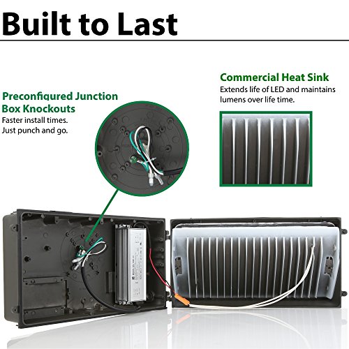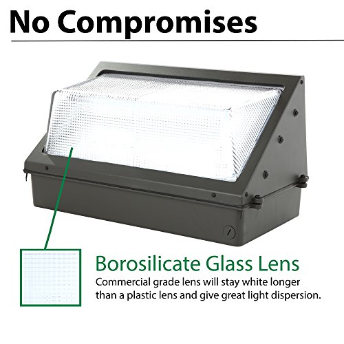 100W LED Wall Pack with Built-in Photo Sensor/Cell (250-400 Watt HPS/HID Replacement) 5000K (Daylight) 12000 Lumens, Commercial Grade, Glass Lens, Photocell Wallpack Lighting Fixture