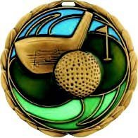 Gold Golf Die Cast Medal - 2.5 Inches - Includes Red, White & Blue V-neck Ribbon