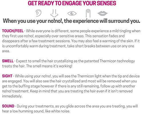 Studio : no!no! Publisher : no!no! Binding : Misc. Product Description Facial Hair? NO! Leg Hair? NO! Don't just remove the hair, treat it with no!no! PRO. With three treatment levels and Pulsed Thermicon Technology, no!no! PRO is a hair removal device designed to give you immediate and long-lasting results with continued use. no!no! PRO keeps the skin cool, while simultaneously delivering a painless hair removal treatment. As with all no!no! products, PRO can be used virtually anywhere on the face and body. All no!no! hair removal devices are safe to use on all skin tones and effective in treating all hair colors. Kit includes no!no! PRO (choice of Pink or Blue), 1 Buffer, 1 Narrow Tip, 1 Wide Tip and one Cleansing Brush. PLUS this DELUXE kit comes with a FREE Travel Case ($15 Value) FREE NEOVA SuperDose Kit ($32 Value). 0