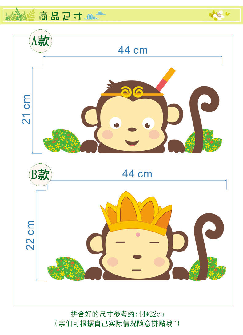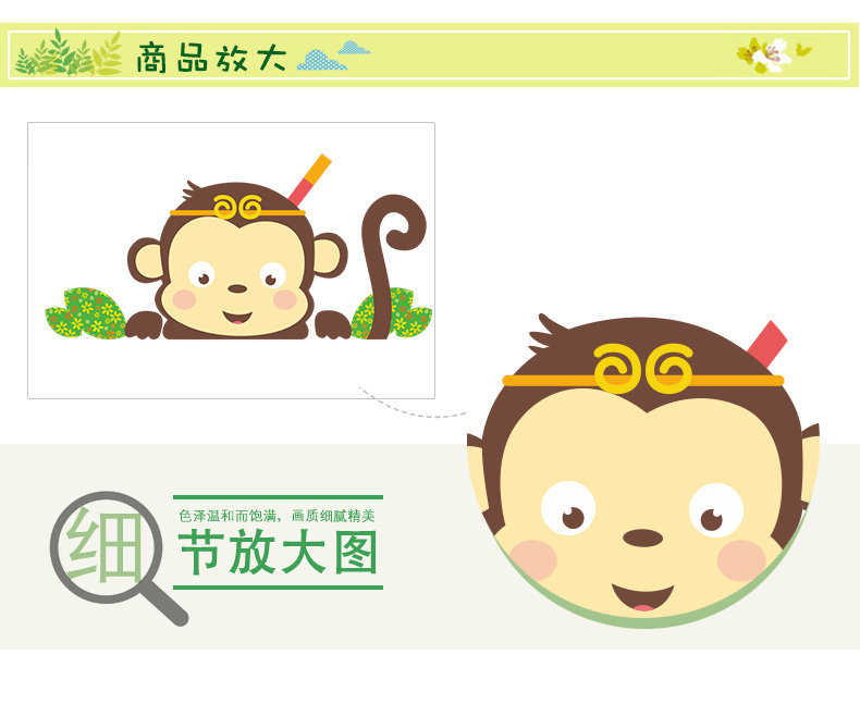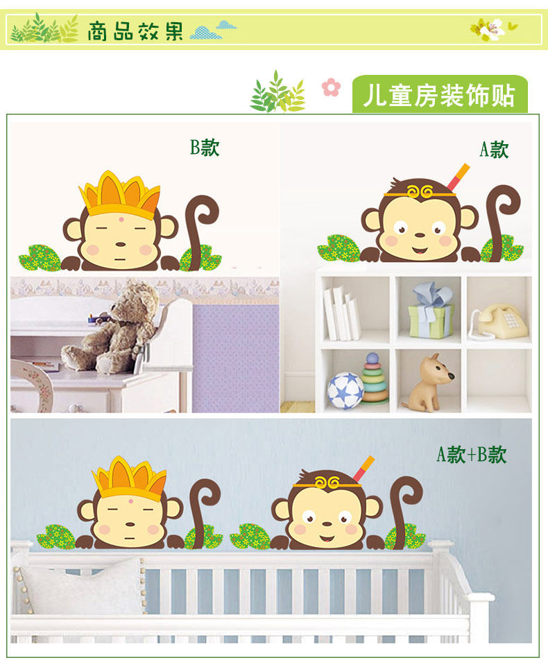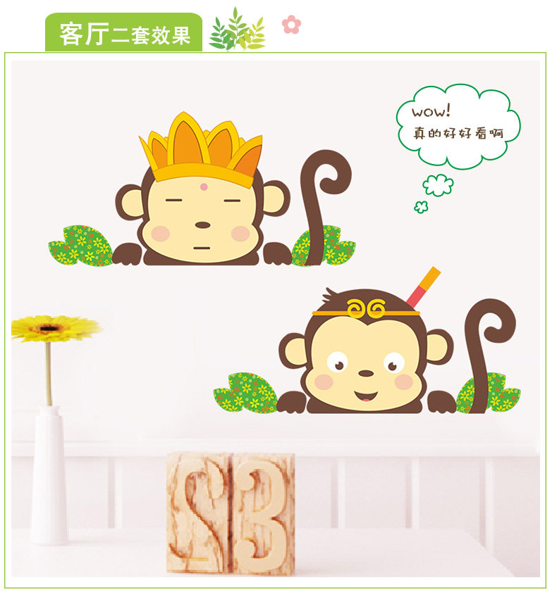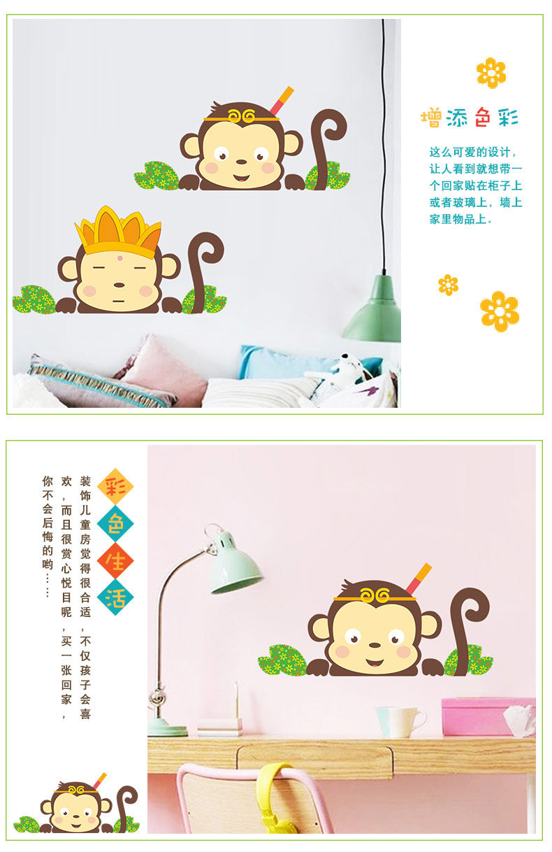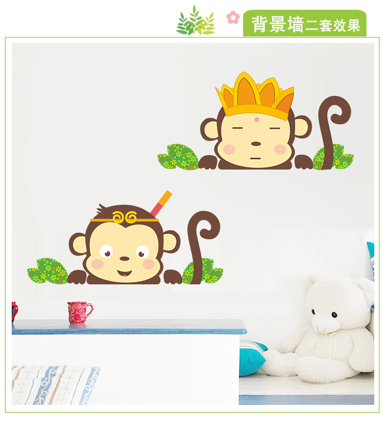 幼儿园墙壁装饰贴纸儿童房间卧室可移除墙贴画卡通猴子可爱贴纸