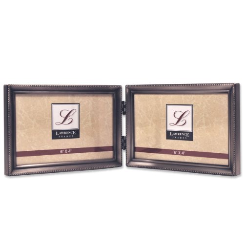 -. Title : Lawrence Frames Antique Pewter 4x6 Hinged Double Horizontal Picture Frame - Bead Border Design