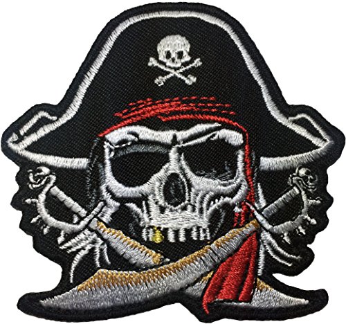 - Pirate Skull Cross Swords Red Turban Skeleton Bone Zombie Ghost Embroidered Sewing Iron on Patch