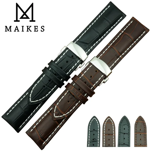 Maikes 새로운 도착 남성 정품 가죽 시계 스트랩 블랙 butterfly buckle18mm 19 미리메터 20 미리메터 21 미리메터 22 미리메터 시계 밴드