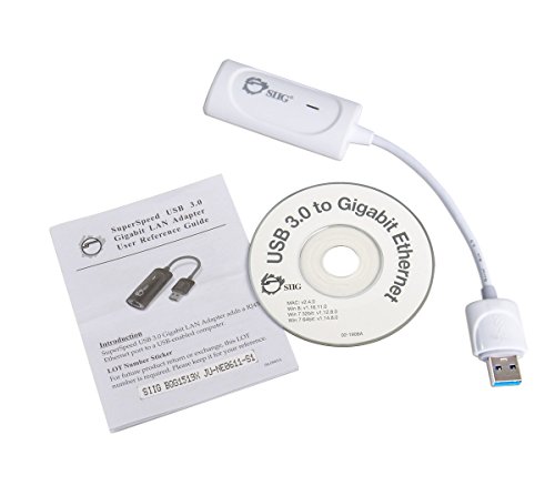 -. Binding : Personal Computers -. Brand : SIIG -. Color : white -. Department : IT -. EAN : 0662774025636 -. Feature : Adds a Gigabit LAN port to your laptop or desktop computer through USB 3.0 connection. / Compact and light weight design makes it a perfect LAN accessory while on-the-go, provides instant wired Ethernet connection. / Perfect companion for Apple Macbooks, Microsoft Surface Windows tablets, Ultrabooks and laptops with a defective, slower 10/100 Mbps or lack of an Ethernet port. / Bus-powered external adapter. Easy external installation to replace or upgrade your Ethernet connection, powered directly from the USB bus. Built-in power and data diagnostic LEDs. / Supports Wake-on-LAN. Windows 10 ready. -. Label : SIIG -. Manufacturer : SIIG -. Model : JU-NE0621-S2 -. MPN : JU-NE0621-S2 -. NumberOfItems : 1 -. PackageQuantity : 1 -. PartNumber : JU-NE0621-S2 -. ProductGroup : Personal Computer -. ProductTypeName : NETWORKING_DEVICE -. Publisher : SIIG -. Studio : SIIG -. Title : SIIG SuperSpeed USB 3.0 to RJ45 Gigabit Ethernet 10/100/1000 Mbps LAN adapter for Windows and Mac systems White (JU-NE0621-S2) -. UPC : 662774025636