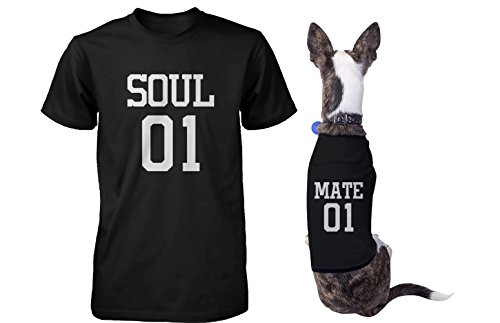 Studio : 365 Printing Publisher : 365 Printing Binding : Misc. Product Description Is your pup your one and only soul mate? You and your dog can now display your love for one another with this awesome set of matching t-shirts! The front of the owner's tee has a graphic printed on it that reads "Soul 01", while the back of the pet's matching shirt is printed with the phrase "Mate 01". 0