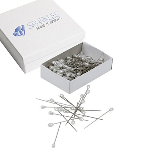 Sparkles Make It Special 144-pcs 2.5 Inch Pearl Teardrop Head End Wedding Corsage Boutonniere Flower Floral Bouquet Pins - White