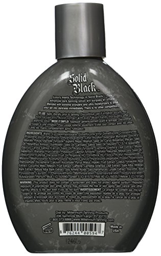 This amazing deal brings you two of Millenium Tan's popular indoor tanning lotions. You will feel and see the results after your first try and since you get two different types of tanner, you can achieve your darkest tan yet. Solid black. 100x ultra advanced silicone bronzer auto darkening tan technology. Luxury meets technology in solid black. This advanced dark tanning lotion will surpass all others. Blended with extreme bronzers and ultra moisturizers to drive your tan into darkness immediately. Insanely Black. 60x mega tingle formula ultra dark bronzers, luxurious silicone emulsion. The most extreme hardcore tingle lotion ever. Not for the faint hearted. This over the top lotion delivers ultra dark bronzing results and breaks the dark tan barrier. You will receive one bottle of each formula with your purchase.Feature