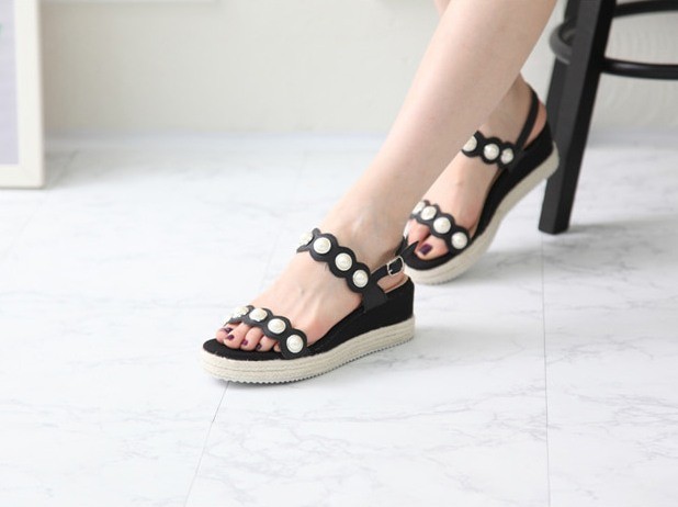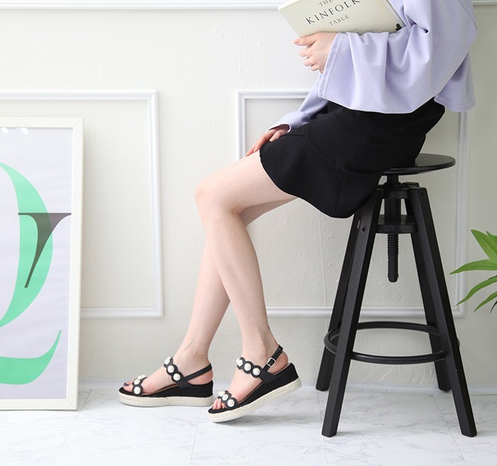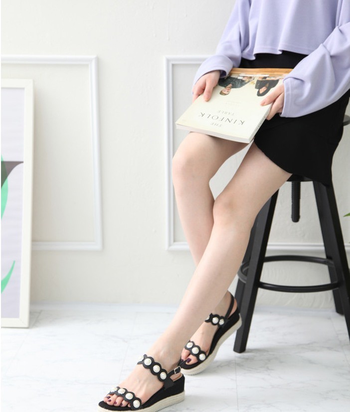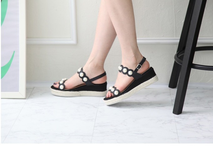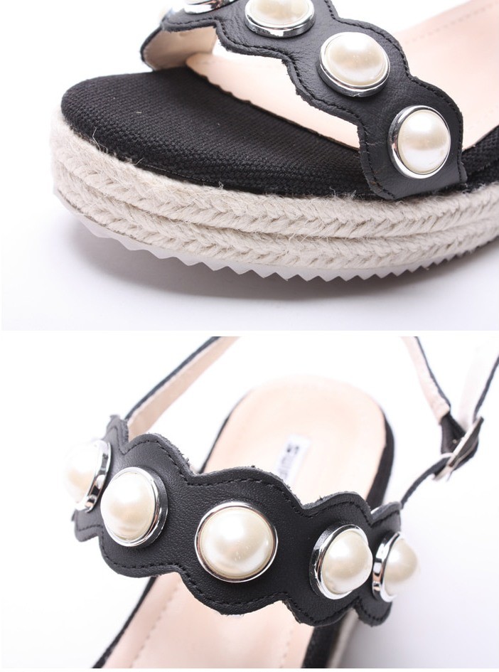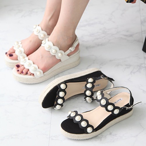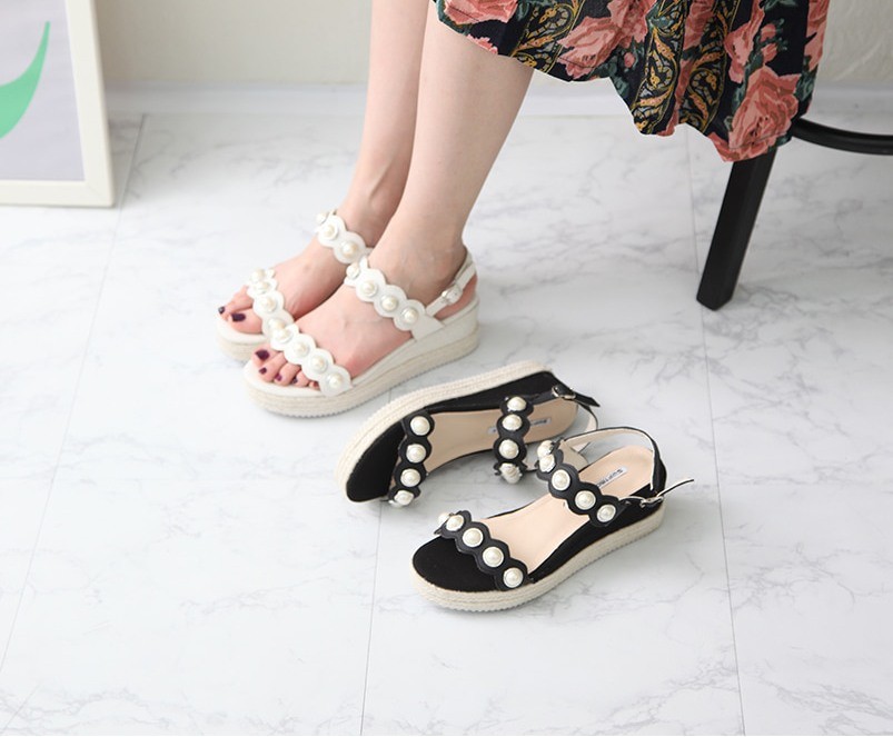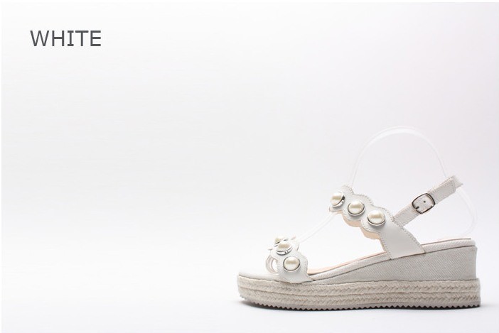 商品名:サンダル レディース パールビジュー ウェッジヒール エスパドリーユ 本革 2018 春 ファッション 靴 婦人靴