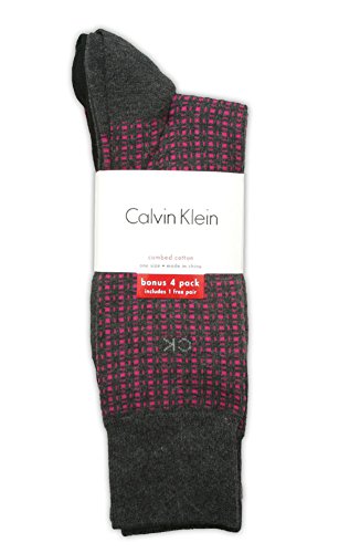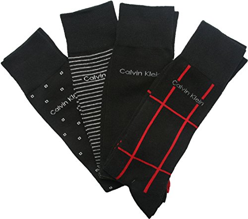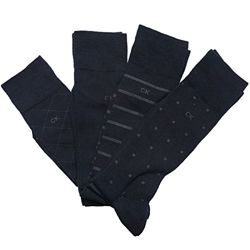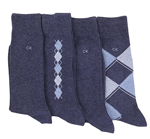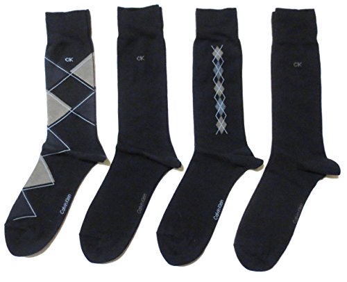 Product Description These Calvin Klein crew socks come a in 4 pack with stylish argyle patterns for a different look every day.? Product Features: Crew socks 4 Pack Argyle pattern Calvin Klein logo across bottom Fits Men's shoe sizes 7-12 Combed Cotton/Polyester/Nylon/Spandex 0