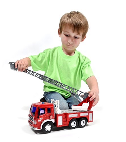 -. Feature : LED lights and electronic sounds / High quality realistic styling / Soft rubber tires / Ladder will extend and Swivel / Rev flywheel motor