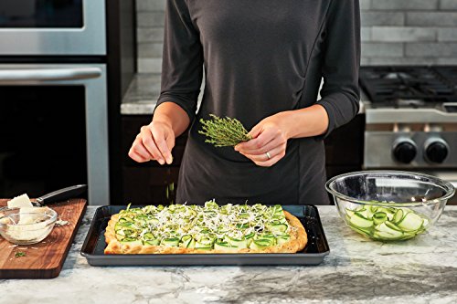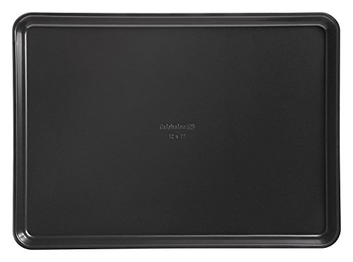 The Calphalon Signature Nonstick Bakeware 12-in. x 17-in. Baking Sheet is designed for durability and premium performance. Crafted with a ceramic nonstick surface, this baking sheet beautifully releases tasty baked goods. PFOA and PTFE-free, this pan features a two-tone elegant design and a scratch-resistant interior for easy maintenance. To clean up, simply place it in the dishwasher, however, hand washing is recommended for best results. Full lifetime warranty.Feature