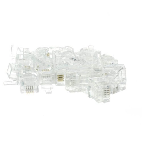 CableWholesale Cable Phone and Data RJ11 Crimp Connectors for Stranded Wire, 6P4C, 50-Pieces (31D0-6P4CS)