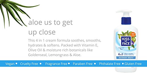 Kiss My Face Moisture Shave Shaving Cream, Olive and Aloe Fragrance Free Shaving Soap for Sensitive Skin, 11 oz Pumps (Pack of 4)