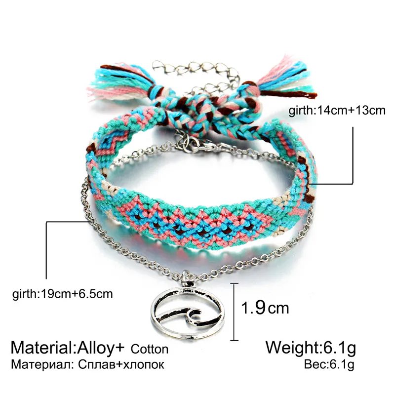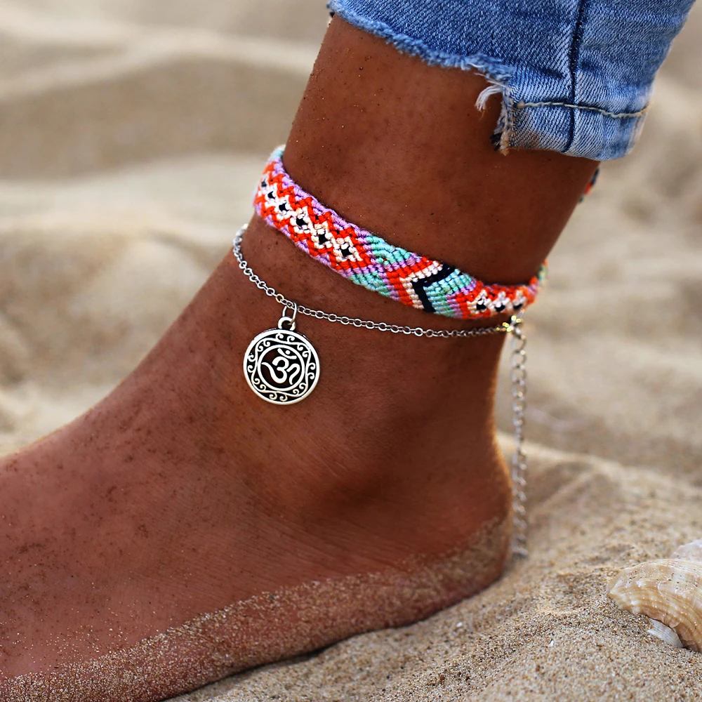 2018 New Design :Bohemian OM Rune Anklet Vintage Anklet Cotton Anklet 2 PCS/Set
