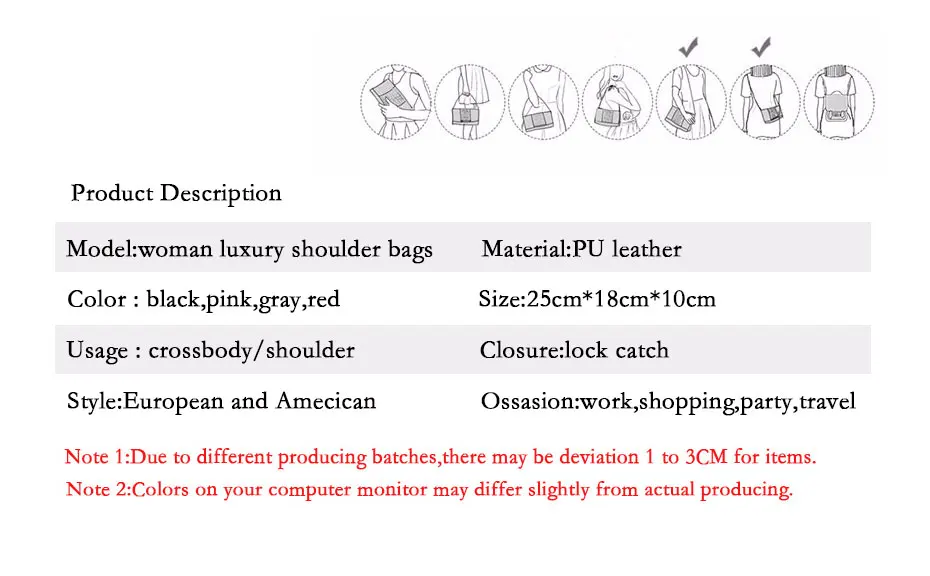 Color:Pink Black Red Gray Bag Woman bolsos mujer