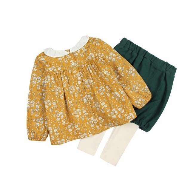 네츄럴한 스타일의 프릴 포인트 여아 상하세트입니다.