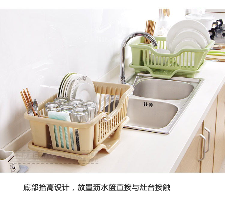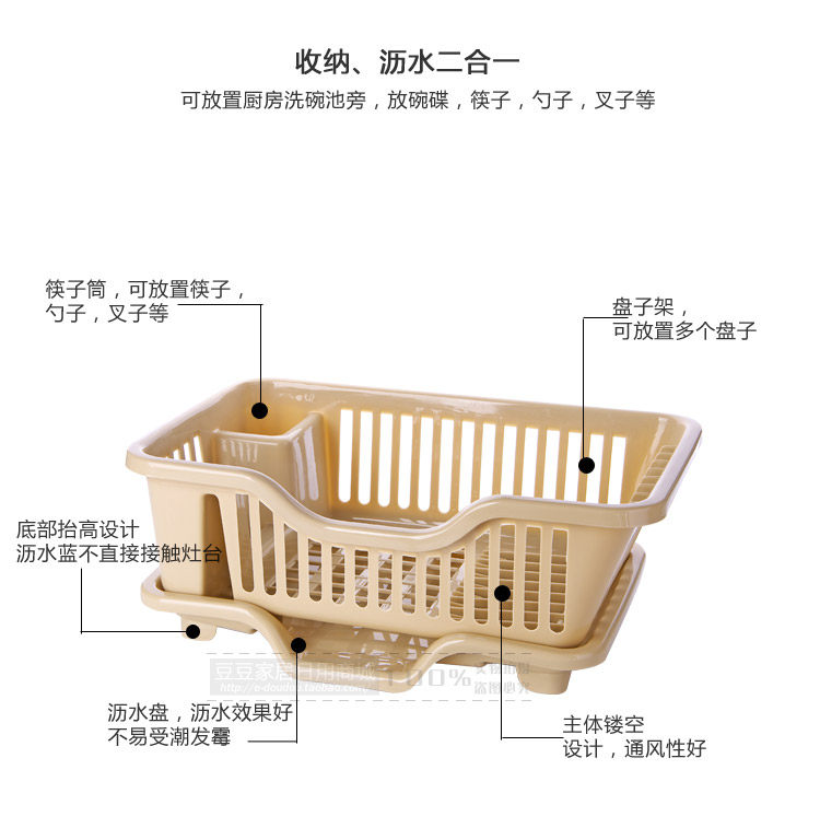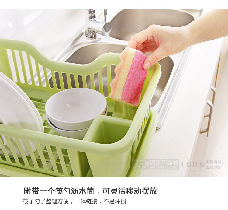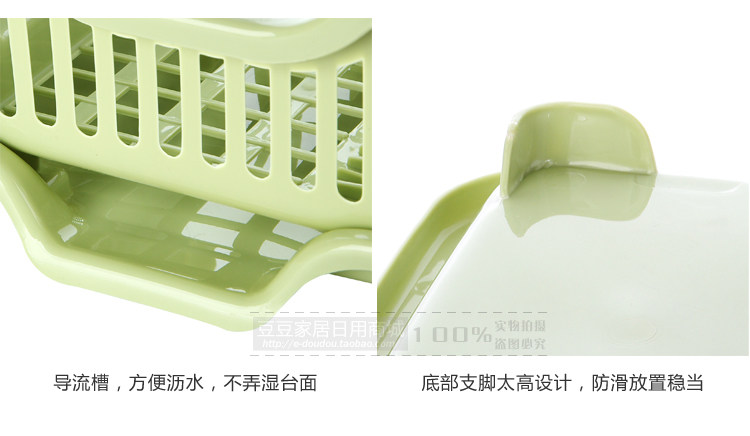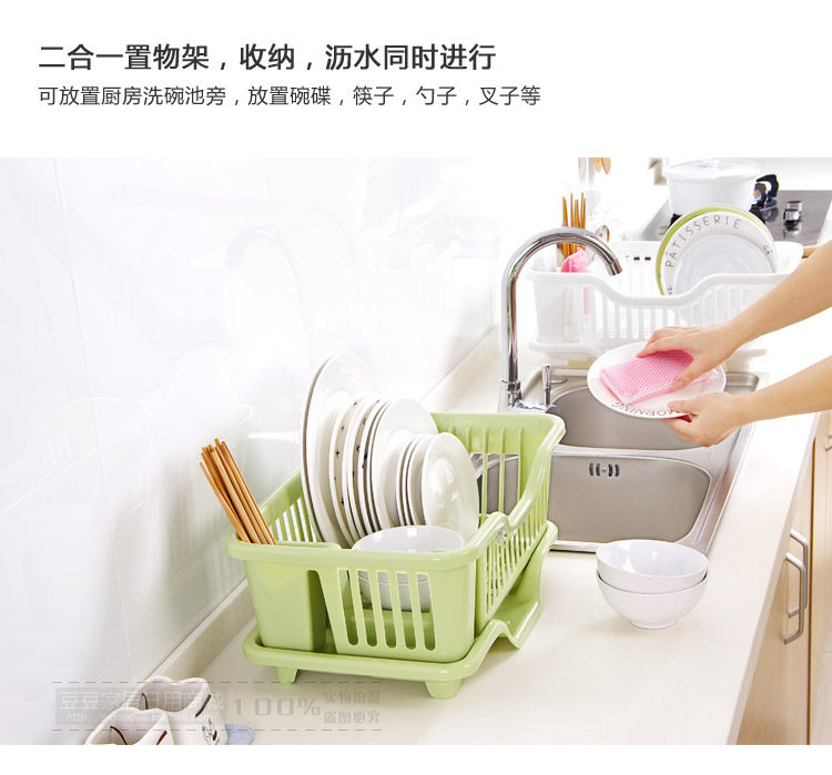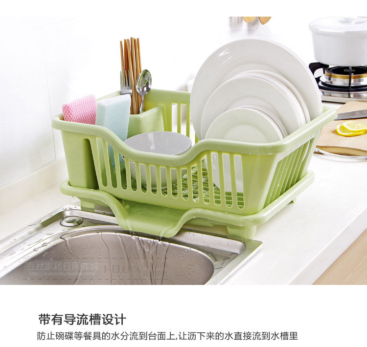 High-quality environmental PP material, strong and durable; simple shape, with chopsticks tube, diversion tray; can be placed next to the kitchen sink, place the dishes, chopsticks, spoons, forks are no problem!